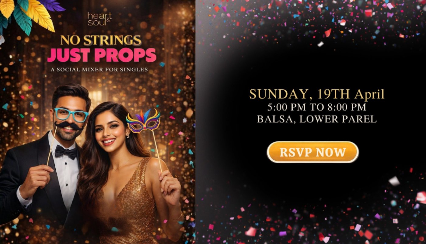 NO STRINGS, JUST PROPSA Heart & Soul Singles MixerCiao Signora e Signori!Grab a prop and strike a pose at Heart & Soul’s most playful Singles Mixer yet.Add a little flair, a little laughter, and a whole lot of spark to your Sunday evening.Meet and greet like-minded singles.Bond over food and drinks.Dress up with fun props.Break the ice effortlessly.Sounds fun? Si!This is your chance to make new friends, enjoy scintillating conversations, and perhaps even meet someone special.Sip a glass of wine.Click a picture with a fancy mustachio.Strike a pose.Start a conversation.Because sometimes, when there are no strings… there’s real connection📍 EVENT DETAILSDate: Sunday, 19th AprilTime: 5:00 PM – 8:00 PMVenue: Balsa, Lower ParelAttire: Smart Casual 💳 FEESEarly Bird: ₹2,500(Includes props, 2 drinks & appetizers)Regular: ₹3,000(Includes props, 2 drinks & appetizers)• Early Bird valid for payments made Before 12th April• Regular rates apply from 12th April onwards• All payments must be completed before 6:00 PM on 19th April• No walk-ins. No payments at the venue• Fees are non-refundable and non-transferable📝 REGISTRATION & SCREENINGAll new attendees must:• Fill out a registration form• Undergo a brief phone interactionVenue confirmation and payment details will be shared post successful screening.Past attendees don’t need to undergo screening.Kindly register by 10th March, as we must confirm headcount with the venue.What is HEART & SOULHEART & SOUL is a unique space where we FIRST help you to SEEK your-self; yes seek, for you never really were lost in the first place. Once you truly seek your-self, a partner now becomes a joy instead of a complication. Now, you don’t go looking for THAT special someone, you just make it SPECIAL. Get the difference? About our Events:Our events are held at carefully selected venues where you can feel at home & mingle in a non-intimidating environment.With the exception of a one off day event, our events are usually at a convenient for working professionals- 9 pm to midnight.The Idea:The events are loosely broken up into 2 parts:a. 5:00 to 5:30 pm will be introductions where you will meet other attendees, make stimulating conversation over unlimited wine or mocktails & finger food. Interact, talk about your-self, enjoy common interests & just soak in the experience. In our effort to make it more interactive, we may have a fun game or two to break the ice!!b. 5: 30 pm onwards, you are free to interact with attendees in a fun, secure party like setting.Our humble suggestion:To get the best out of such evenings, please try to focus on the overall experience. Savour each interaction, feel the vibe & try not keeping a count or an account of “how many” you meet or the number of drinks etc. please appreciate we are trying our best to provide you with a one of a kind opportunity to meet, interact & possibly you taking things forward with the right person.Things to keep in mind before attending our event:o If you are not on the guest list, you won’t be let in. This event start post dinner at 5:00 pm and ends at 8:00 pm . We request you to come on time so that you have a chance to settle in and meet everyone before the music is turned up.o You must be legally single & NOT in a relationship to join our events.o At the registration desk, you will need to registero The full payment will be collected in advance before the event. At the day of the event, no payments will be entertained at the gate.o We try our best to maintain a balanced ratio of men and women, and request you to inform us in case you have a change of plans.o Come with an open mind, and put your best foot forward. We will be around to introduce members to each other, however, we encourage you to be proactive too!o Please be respectful of everyone at the party. We suggest exchanging email/Facebook IDs before phone numbers.o If someone asks us for your contact information after the event, we will share your email ID with them unless you’ve specifically asked us not to.o Please try not to 'hog' anyone's time, and give guests a chance to meet others.o Please refrain from using the events to promote your business.o Valet service will is be available at this particular venue. You may try to request the valet to park your car.o The fee is non-refundable, non-transferable, and cannot be used for a future event.Other things to keep in mind:o The Total Fee is Non-Refundable & Non-Negotiable.o Fees will differ depending on the Venue.o The fees are uniform for ALL. No special requests will be entertained.o The service has been designed as an offering to be able to provide you with a holistic experience. Should you wish to not avail of a particular component of the offering, there will be no reduction in fees.o Heart & Soul will not be held responsible for any false or misleading information provided by members. Any member intentionally providing false or misleading information will be banned from further participation.o Heart & Soul is not responsible for what takes place outside of the events or 1-on-1 meetings.o Our familiarity with our members is limited to information provided on the registration form, and our brief interactions with them, and are by no means character references.o We encourage members to take the time to get to know each other before making any commitment.o If you have a complaint about the behavior of our members during events or 1-on-1 meetings, we encourage you to inform one of our team members.For more information, email us at info@heartandsoulevents.in or visit our Facebook page www.facebook.com/HEART-and-SOUL-Events