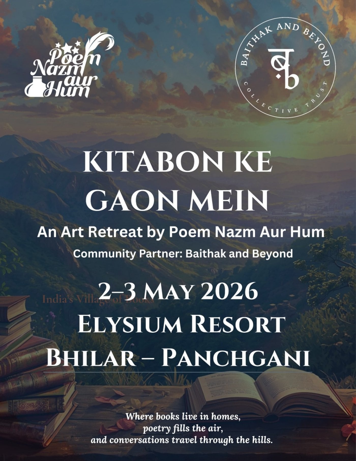 ✨Kitabon Ke Gaon Mein✨An Art & Poetry Retreat by Poem Nazm Aur HumCommunity Partner: Baithak and BeyondWelcome to Kitabon Ke Gaon Mein, a overnigh...
