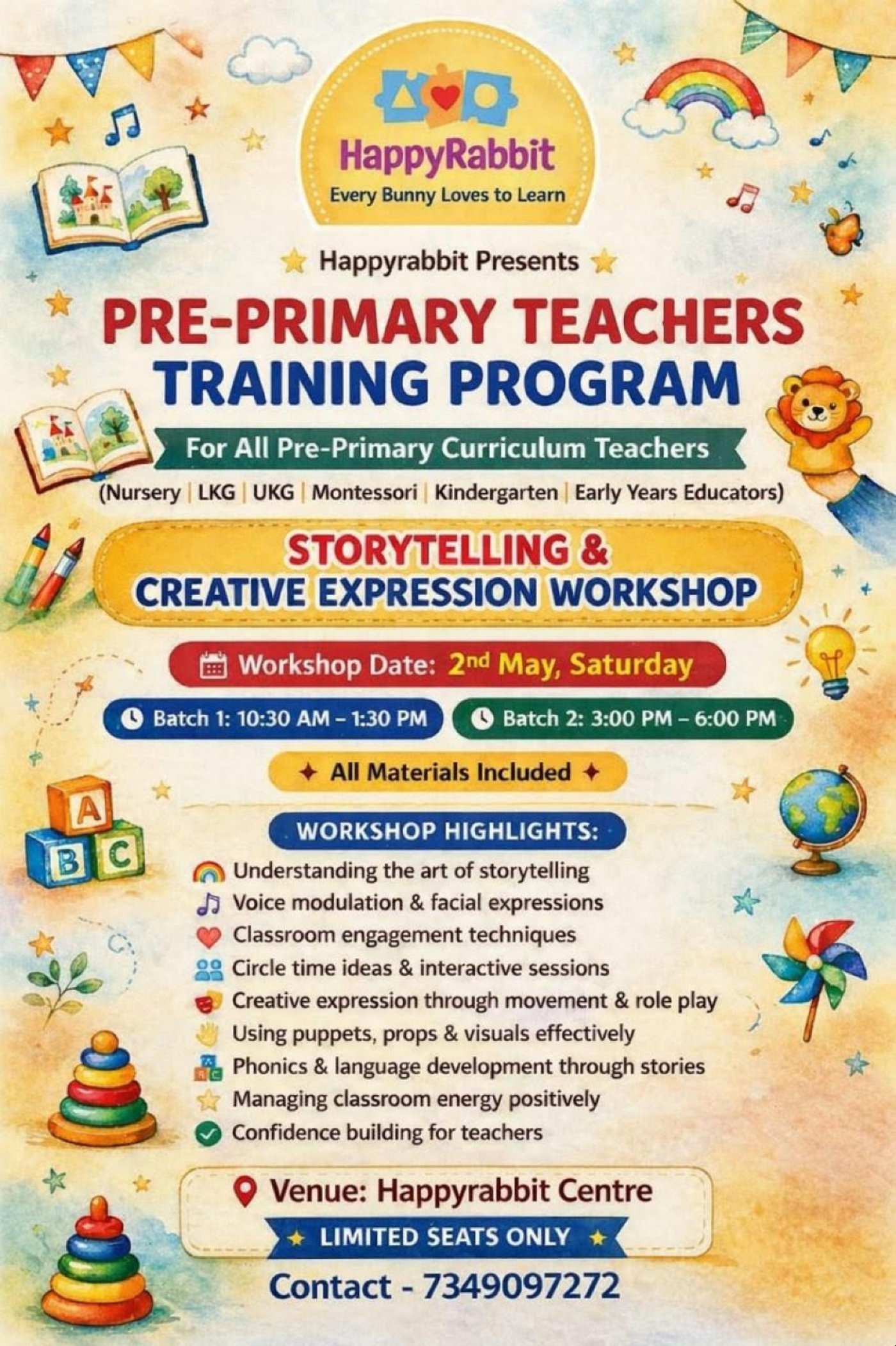 Happyrabbit Presents 🌟PRE-PRIMARY TEACHERS TRAINING PROGRAMA specially designed workshop for Pre-Primary Curriculum Teachers(Nursery | LKG | UKG | Mo...