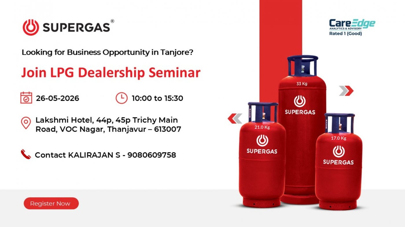 Tanjore's energy needs are growing. Become a SUPERGAS LPG cylinder dealer and be a part of the city's dynamic growth. Want to know how? Attend our dea...