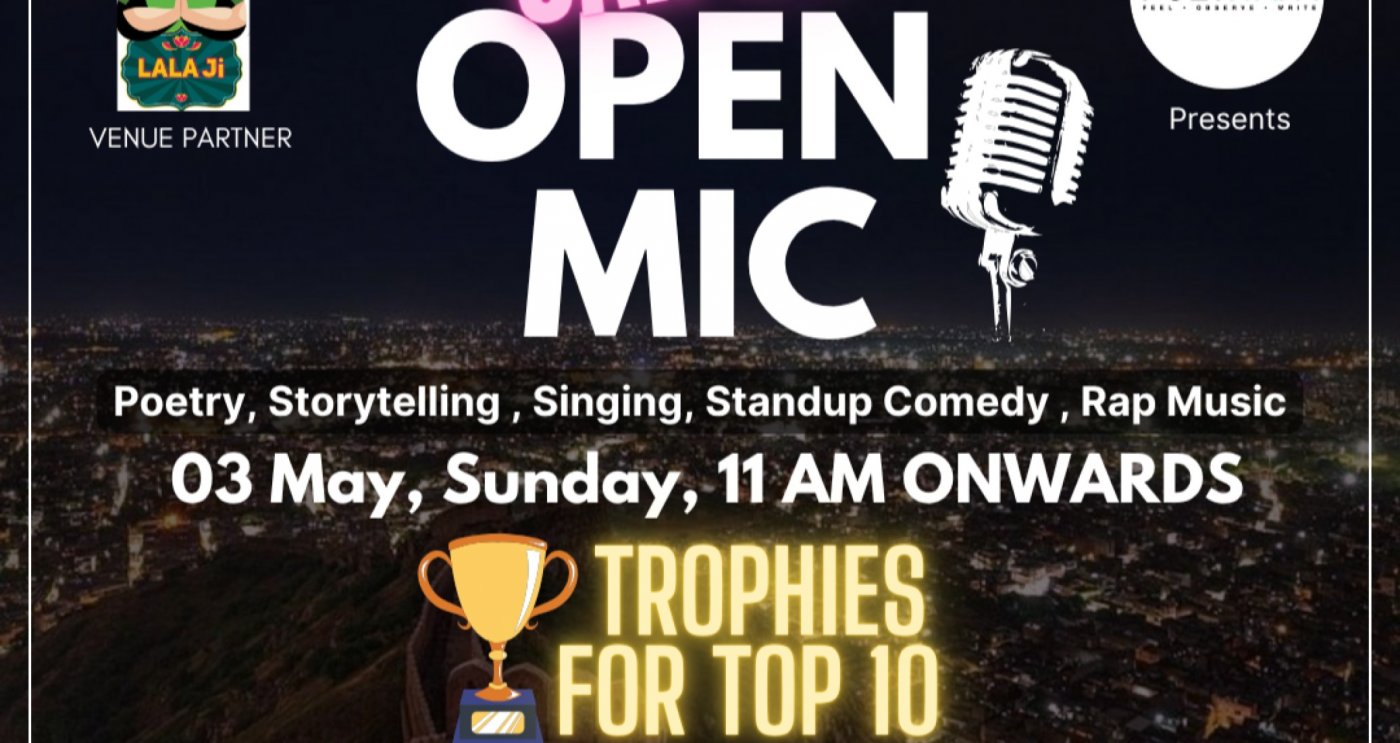 *Open Mic Details* π€ .Date: 03 May, SundayTimings: 11am to 3pm.Performance Categories: Poetry, Singing, Storytelling, Standup Comedy, Rap Music .*Per...