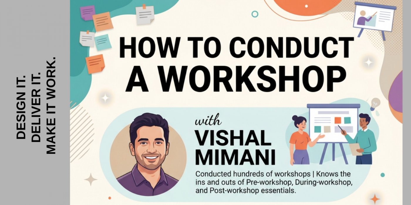 HOW TO CONDUCT A WORKSHOPDesign it. Deliver it. Make it work.With Vishal Mimani(Conducted 100s of workshops across diverse audiences)Turn your idea in...