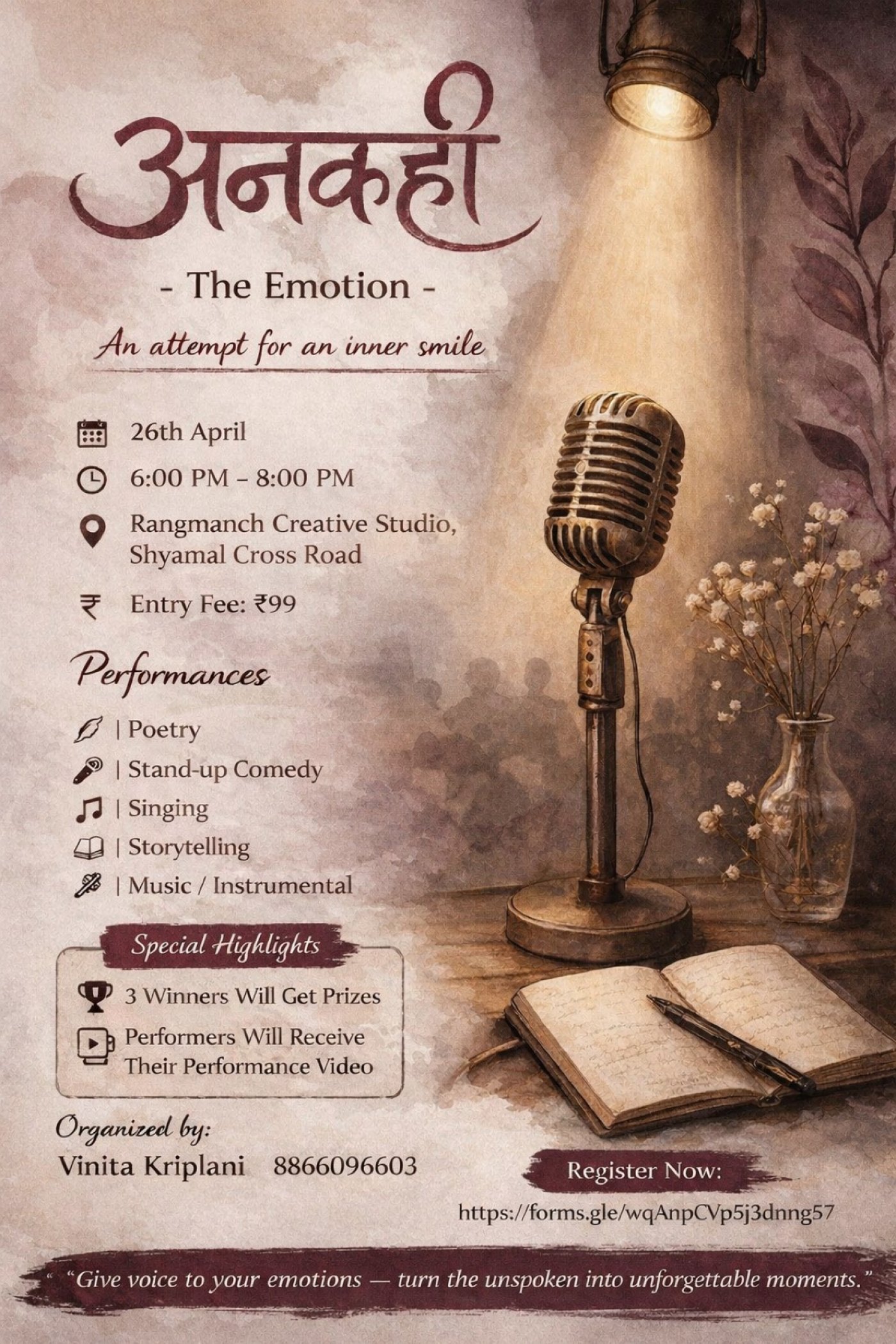 Step into the enchanting world of emotions at "अनकही - The Emotion," a captivating open mic show where hearts and minds intertwine in poetic harmony.�...