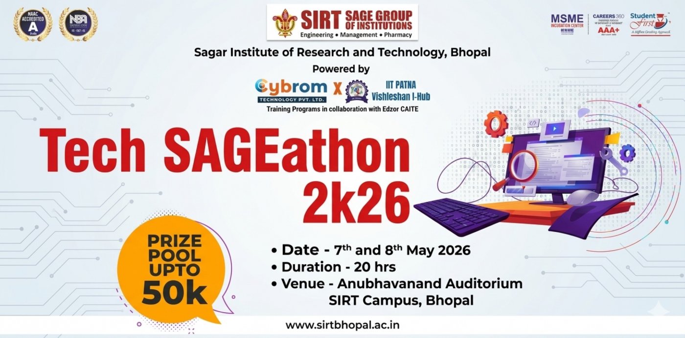 20 Hours. One Goal. Infinite Innovation.The Sagar Institute of Research and Technology (SIRT), Bhopal proudly presents Tech SAGEathon 2k26 - an electr...